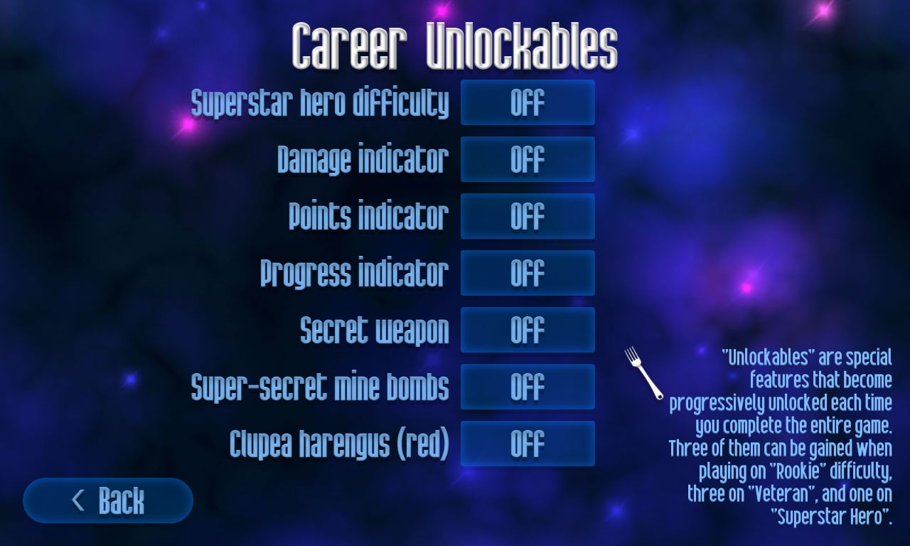 After that the unlockables are unlocked depending on the difficulty (skill): (this is not a joke!)do this until all your lives are gone. After unlocking its 3 unlockables, you will be no longer able to … Then go to the play area (solar system)again and you will see that you are having 16 lives , 16 missiles and all unlockables will be unlocked! Revenge of the yolk, and go to the main menu.